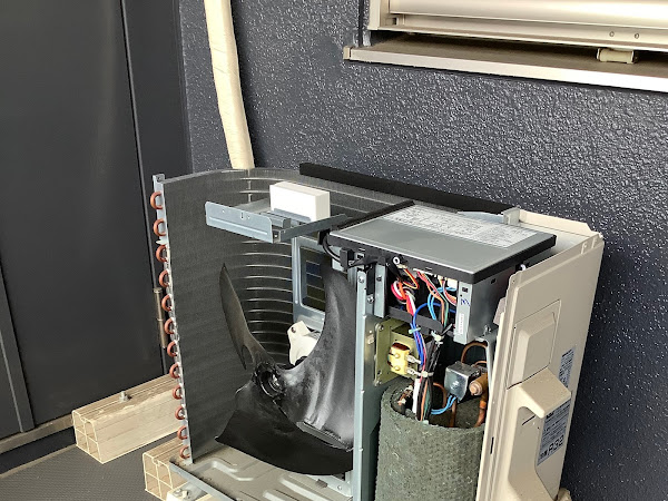 ただ、室外機にも室内機と同様の熱交換器が内蔵されていて、熱を放出するためにファンが回っています。